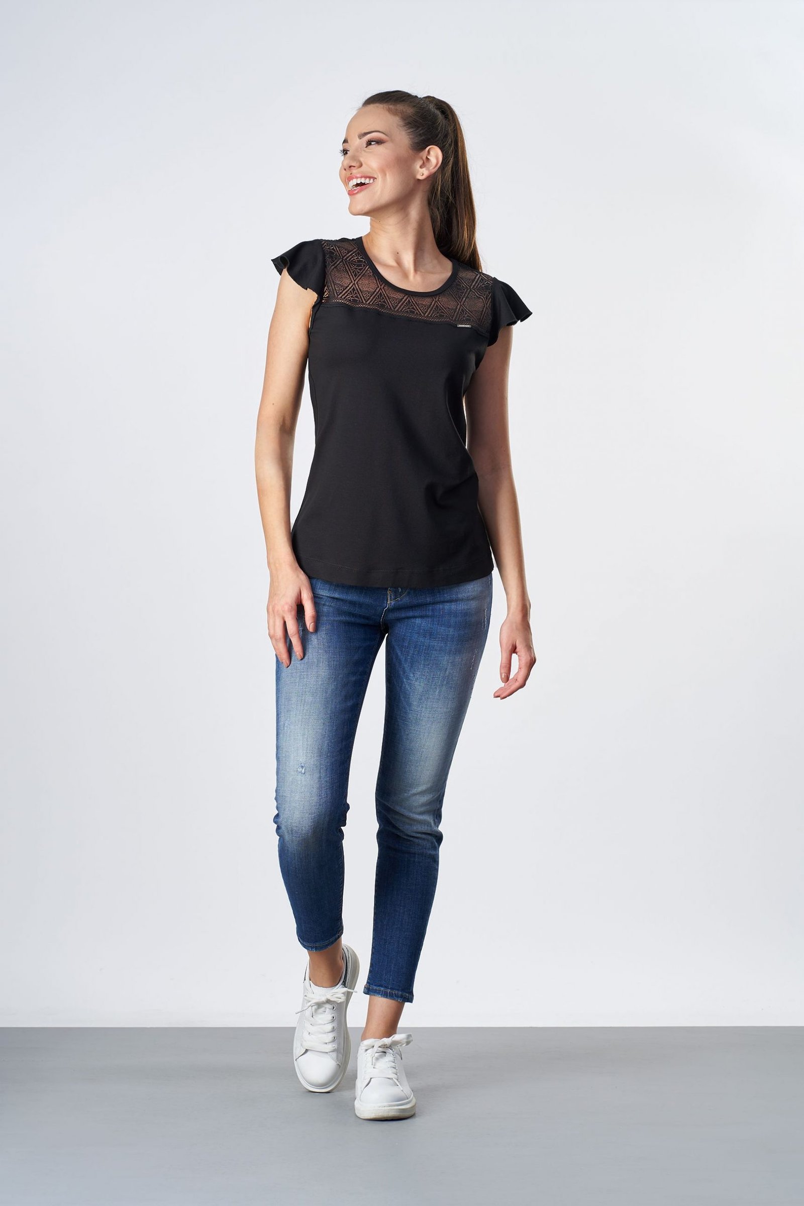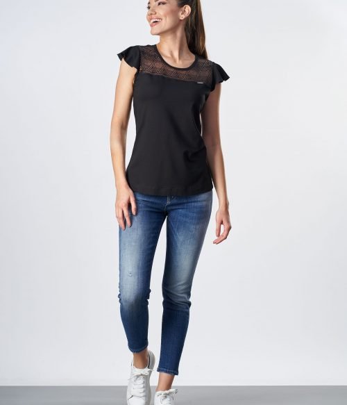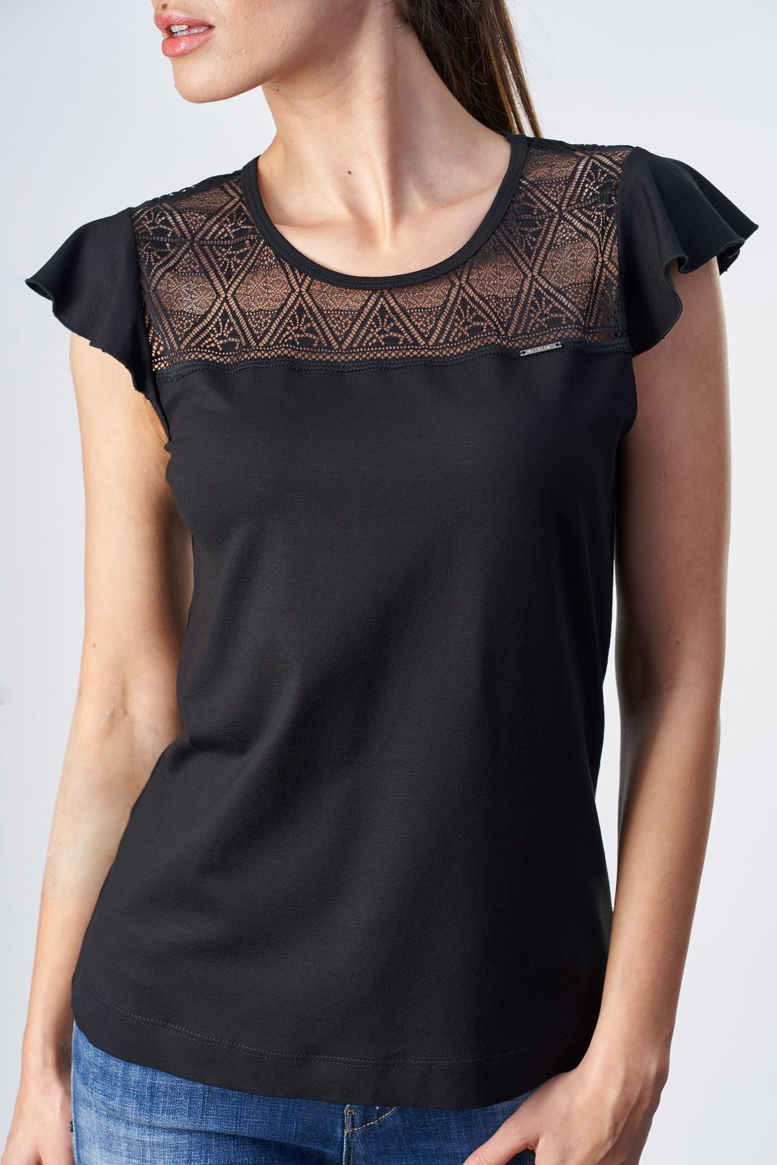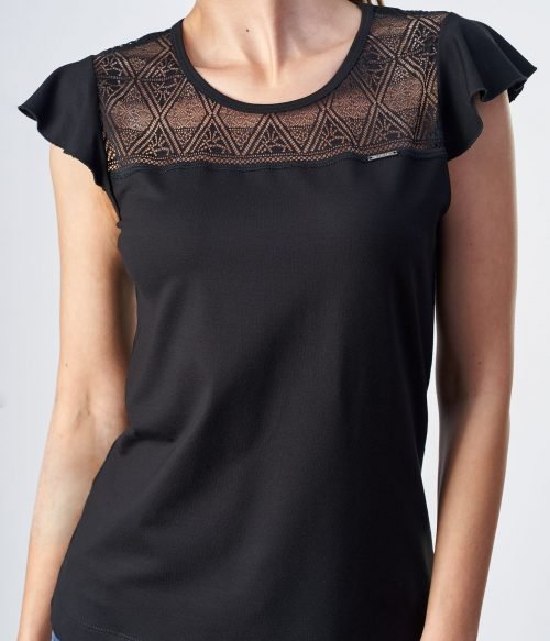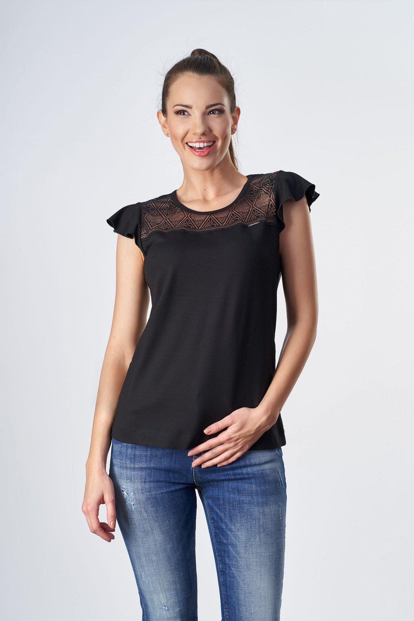 Разпродажба!Блуза от трико вискоза с платка от дантела