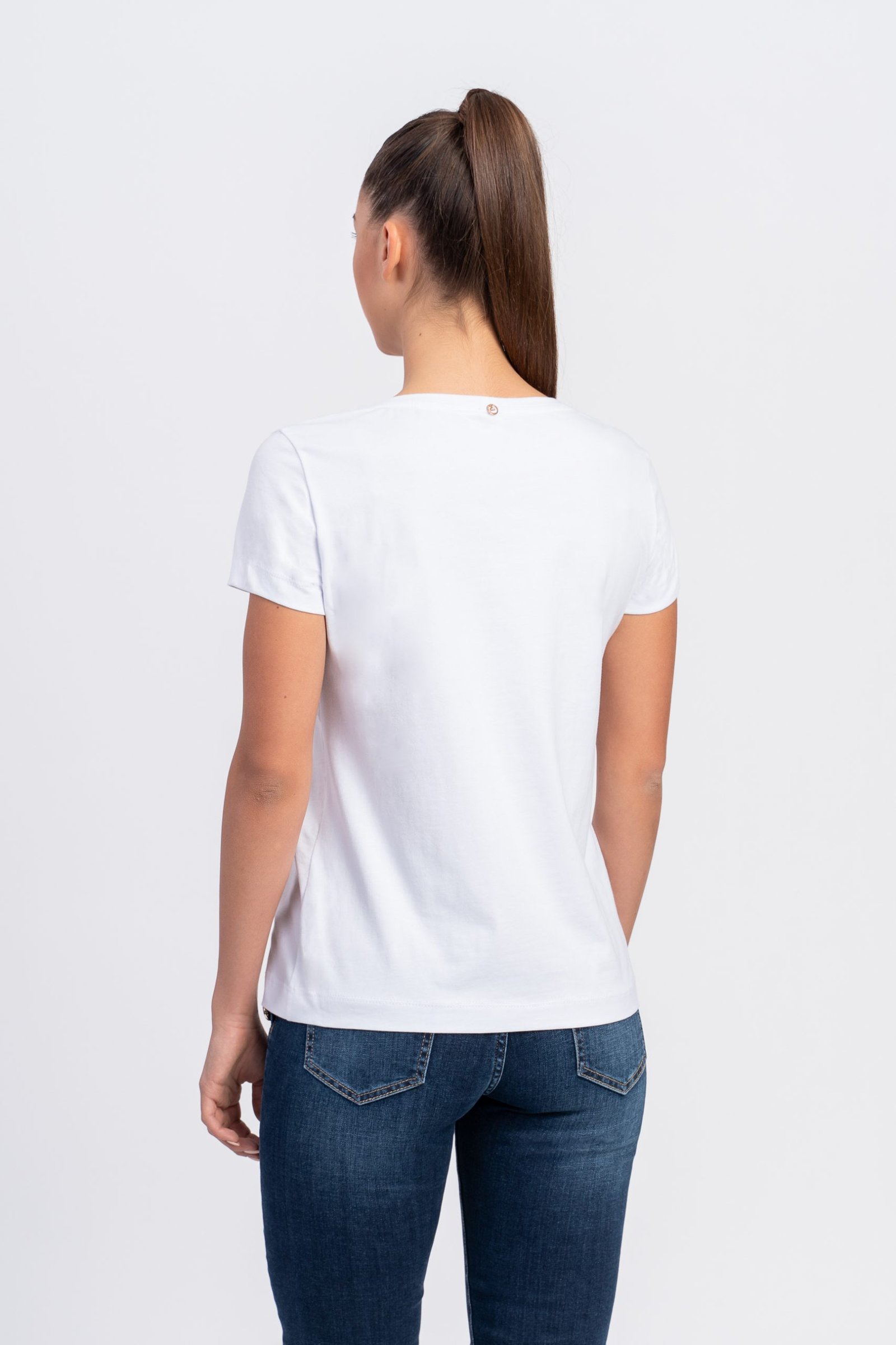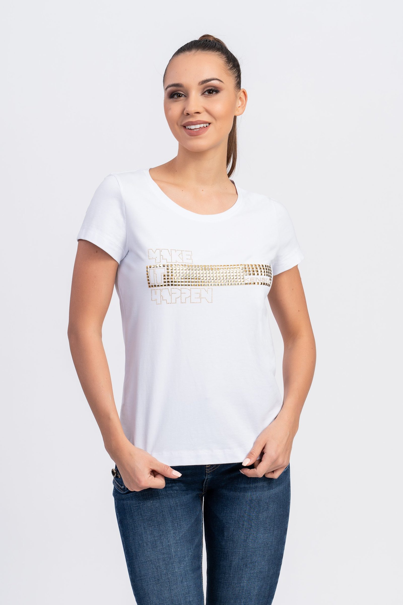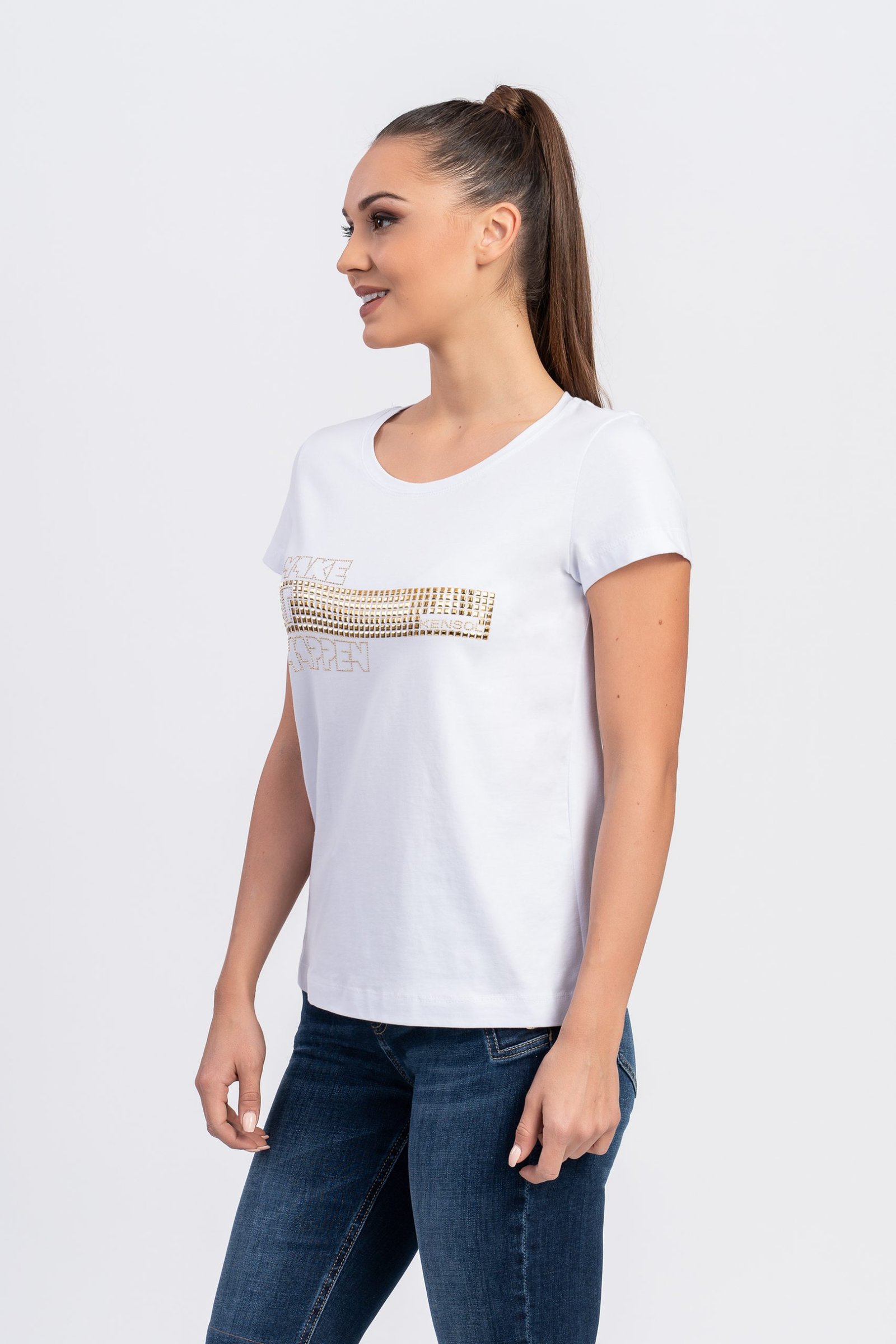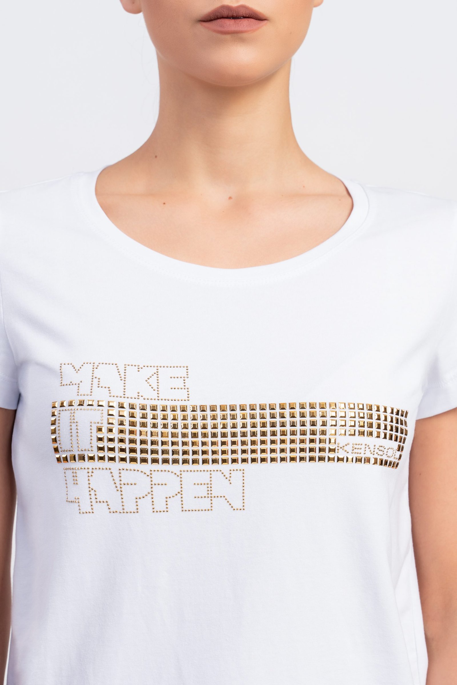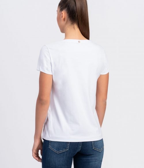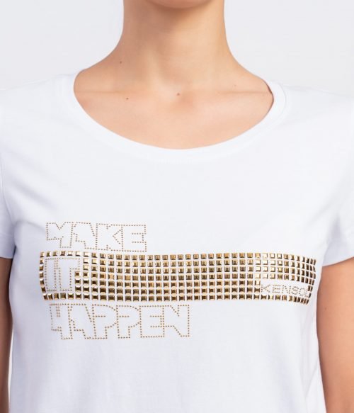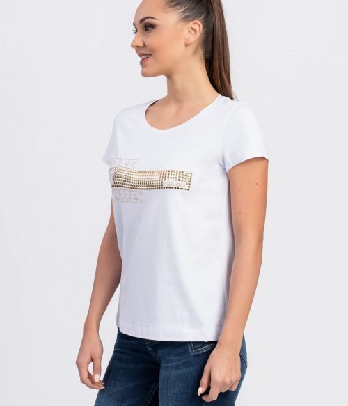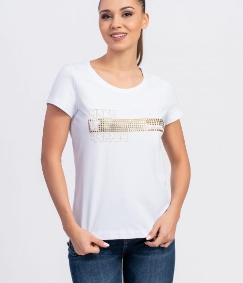 Блуза с къс ръкав от трико памук и златен проект