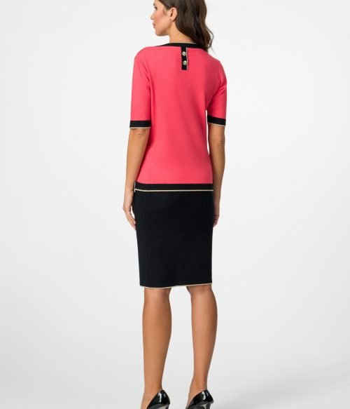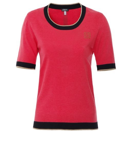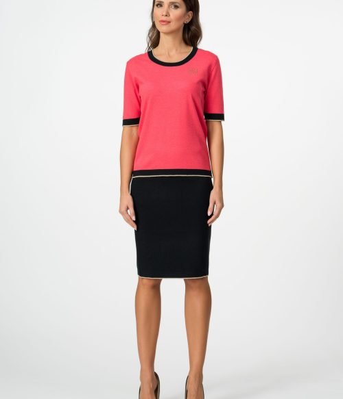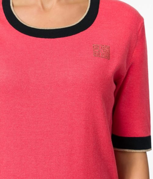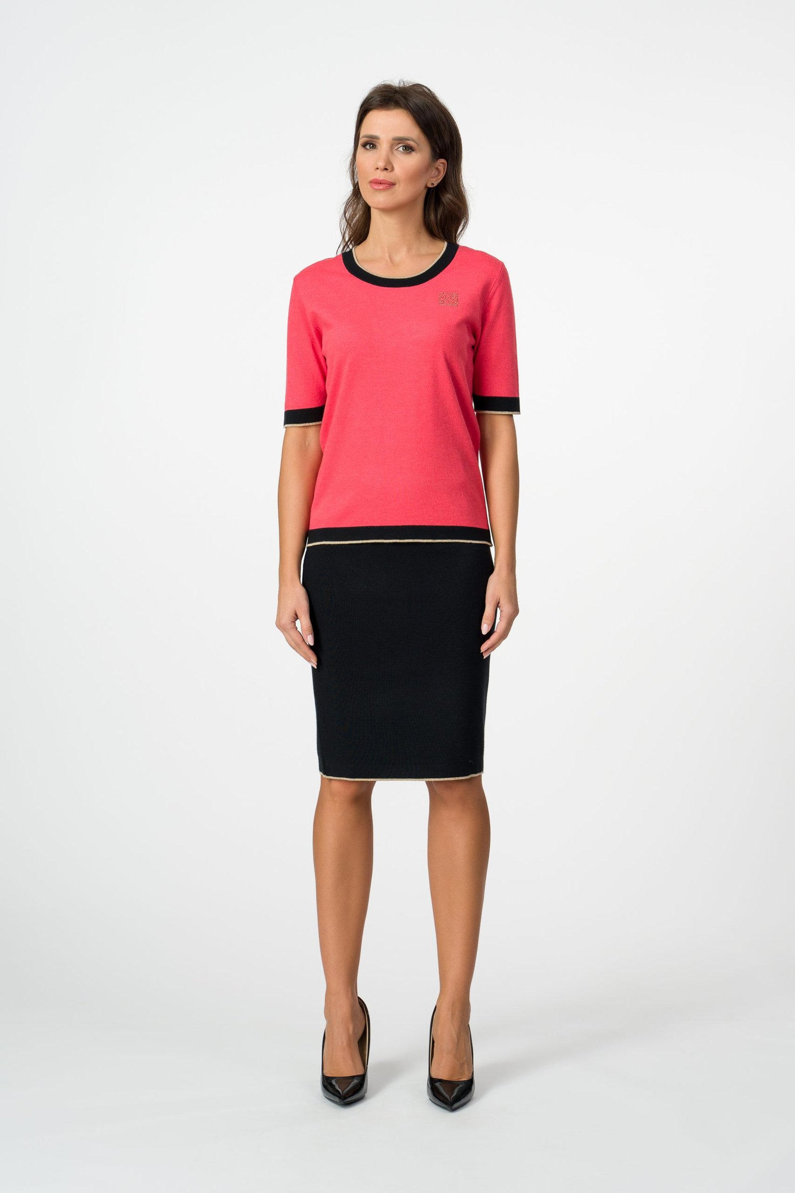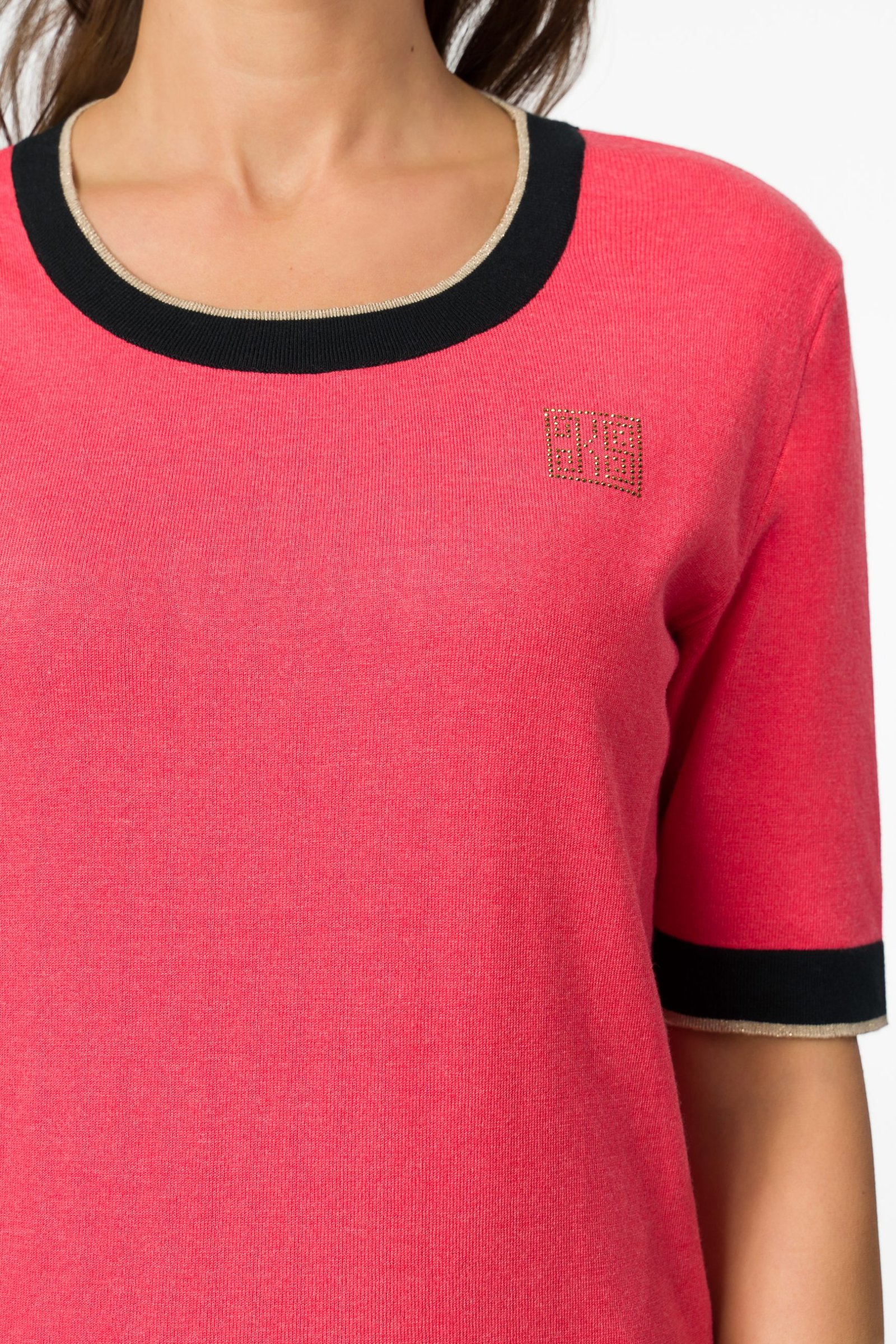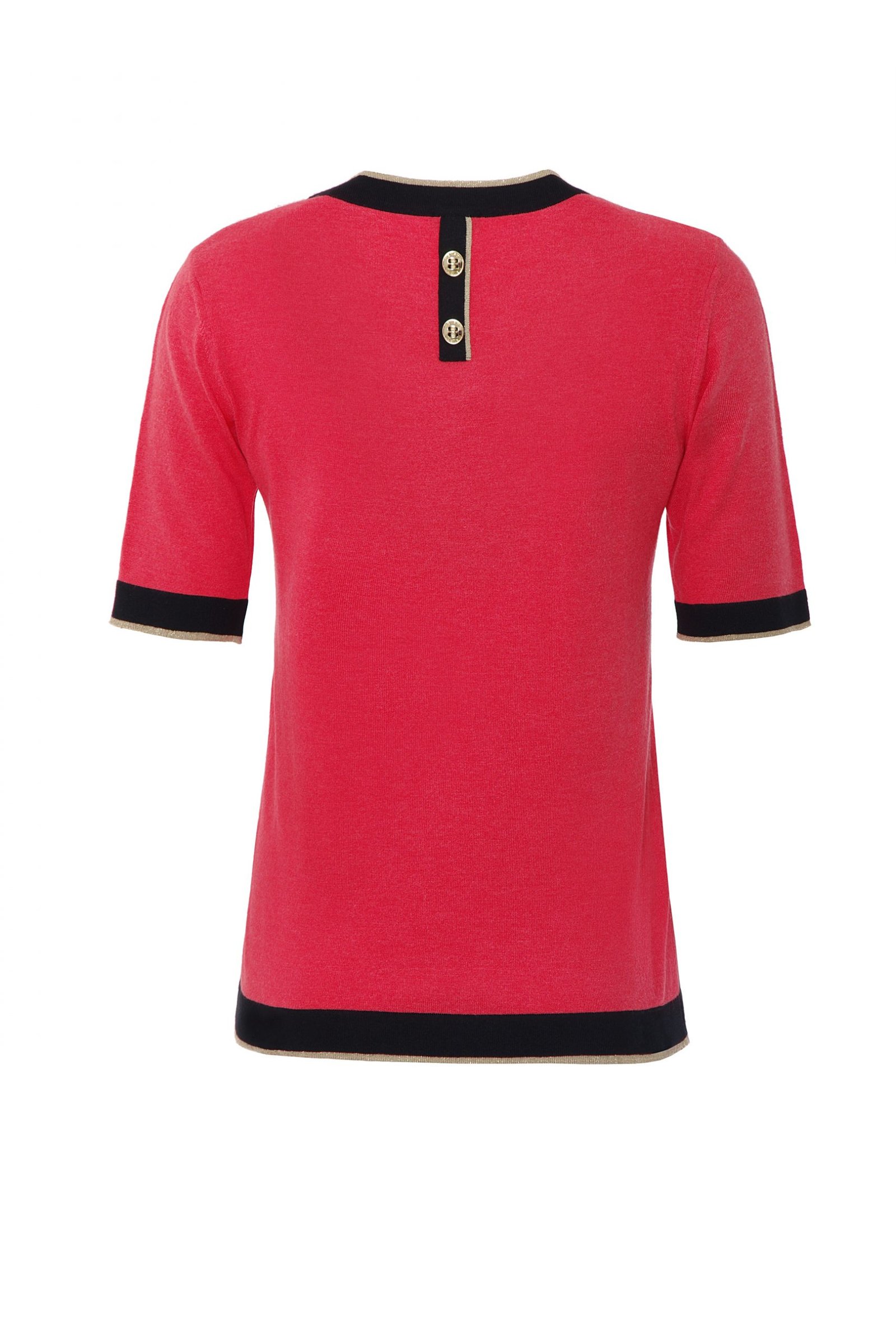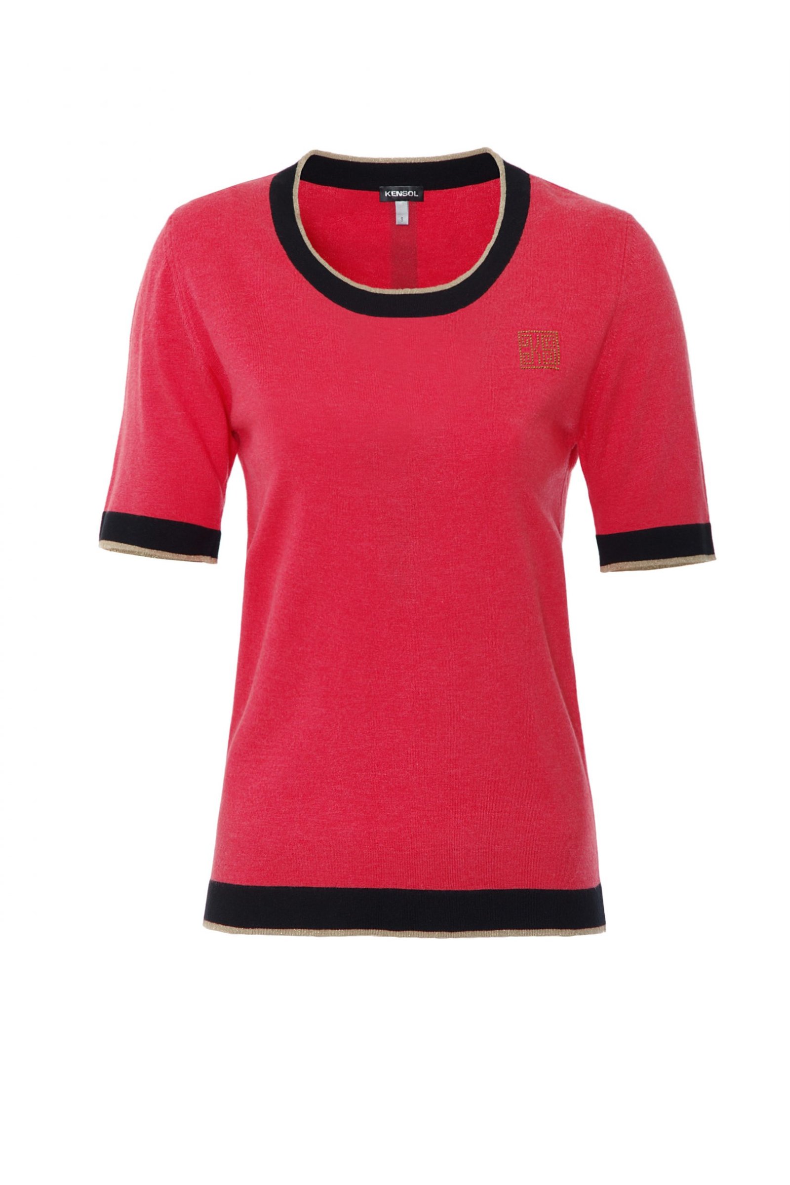 Блуза плетиво с къс ръкав и кръгло деколте.