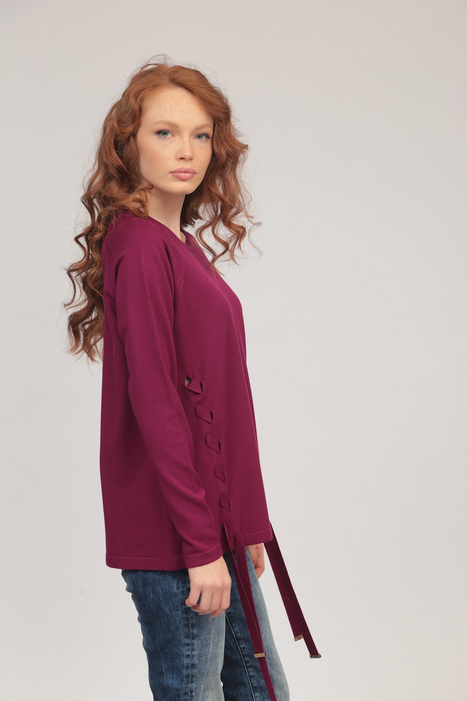 Разпродажба!Блуза от фино плетиво с декорация плетени ленти