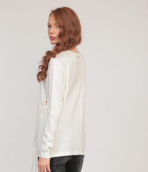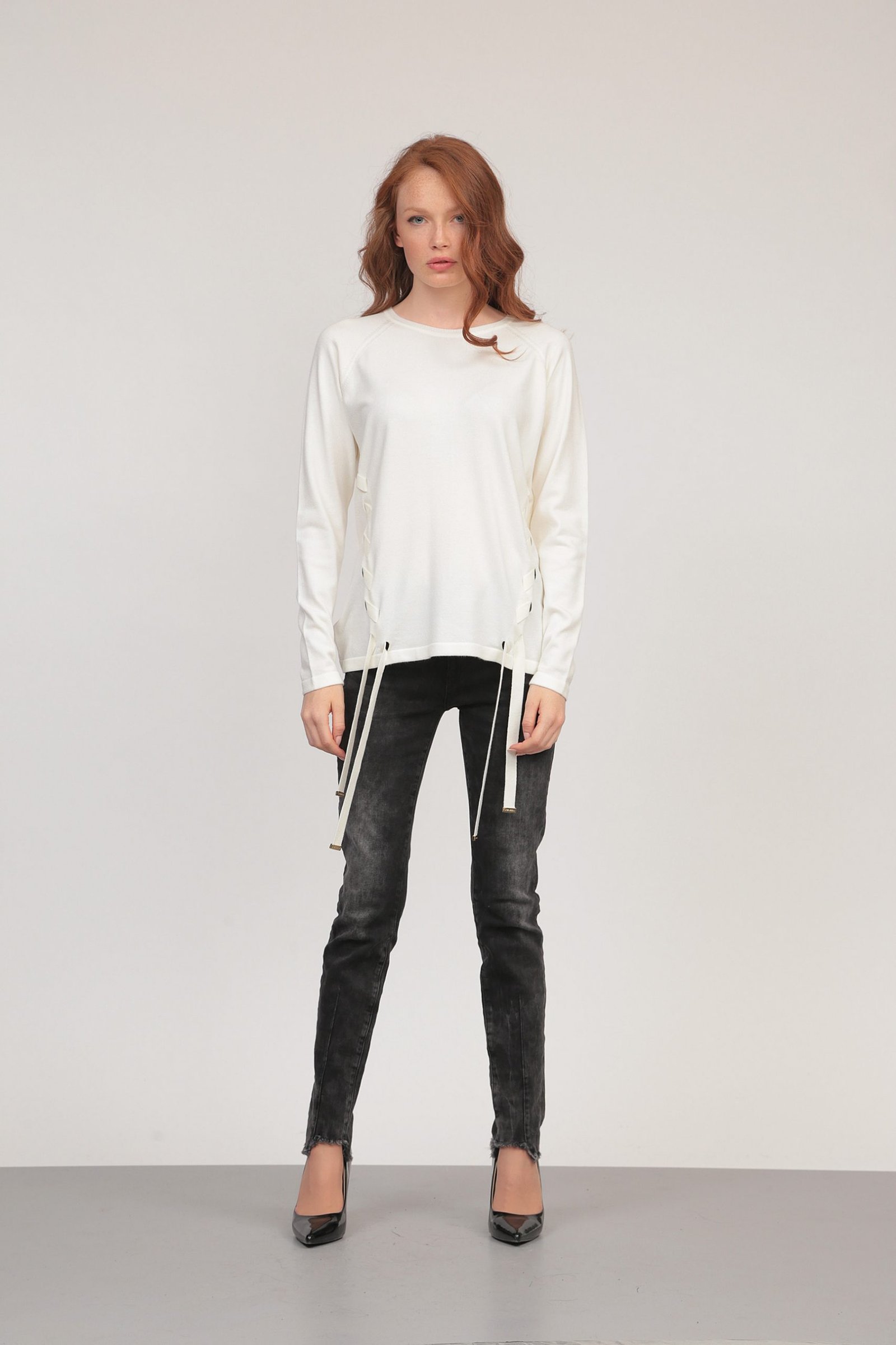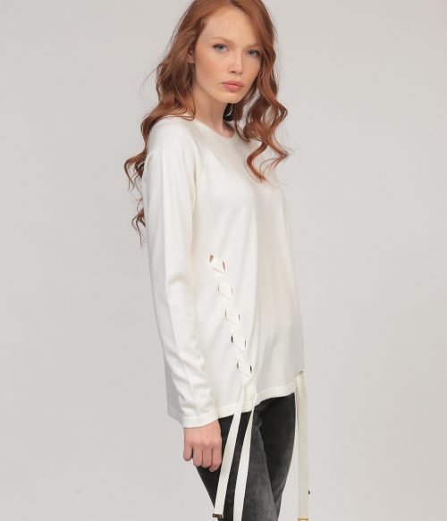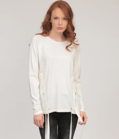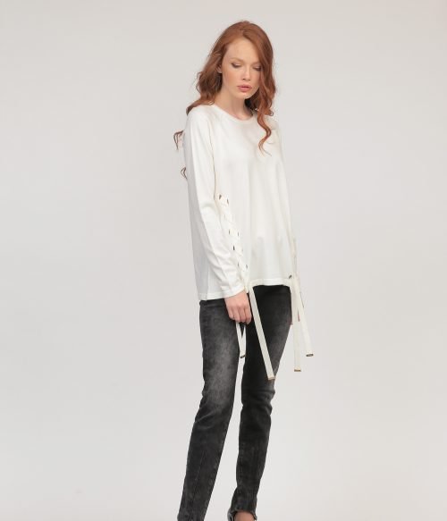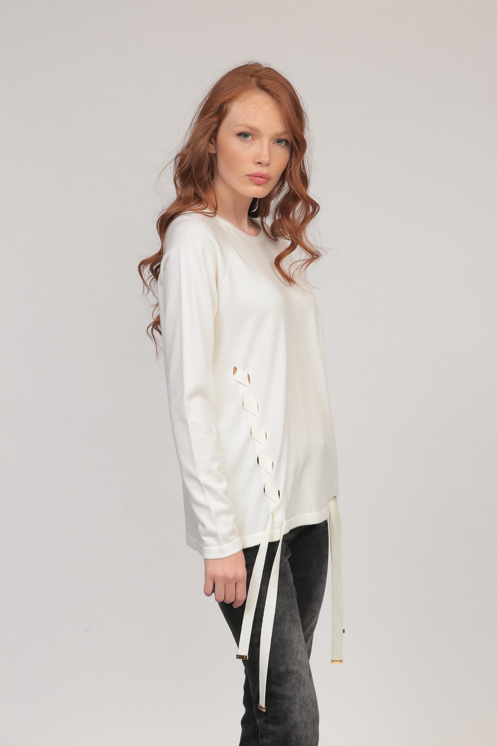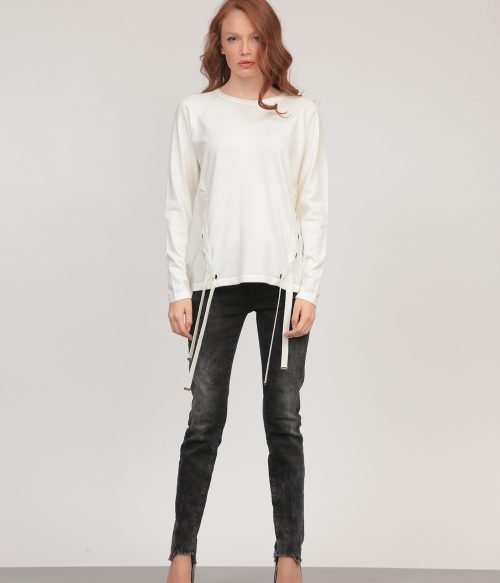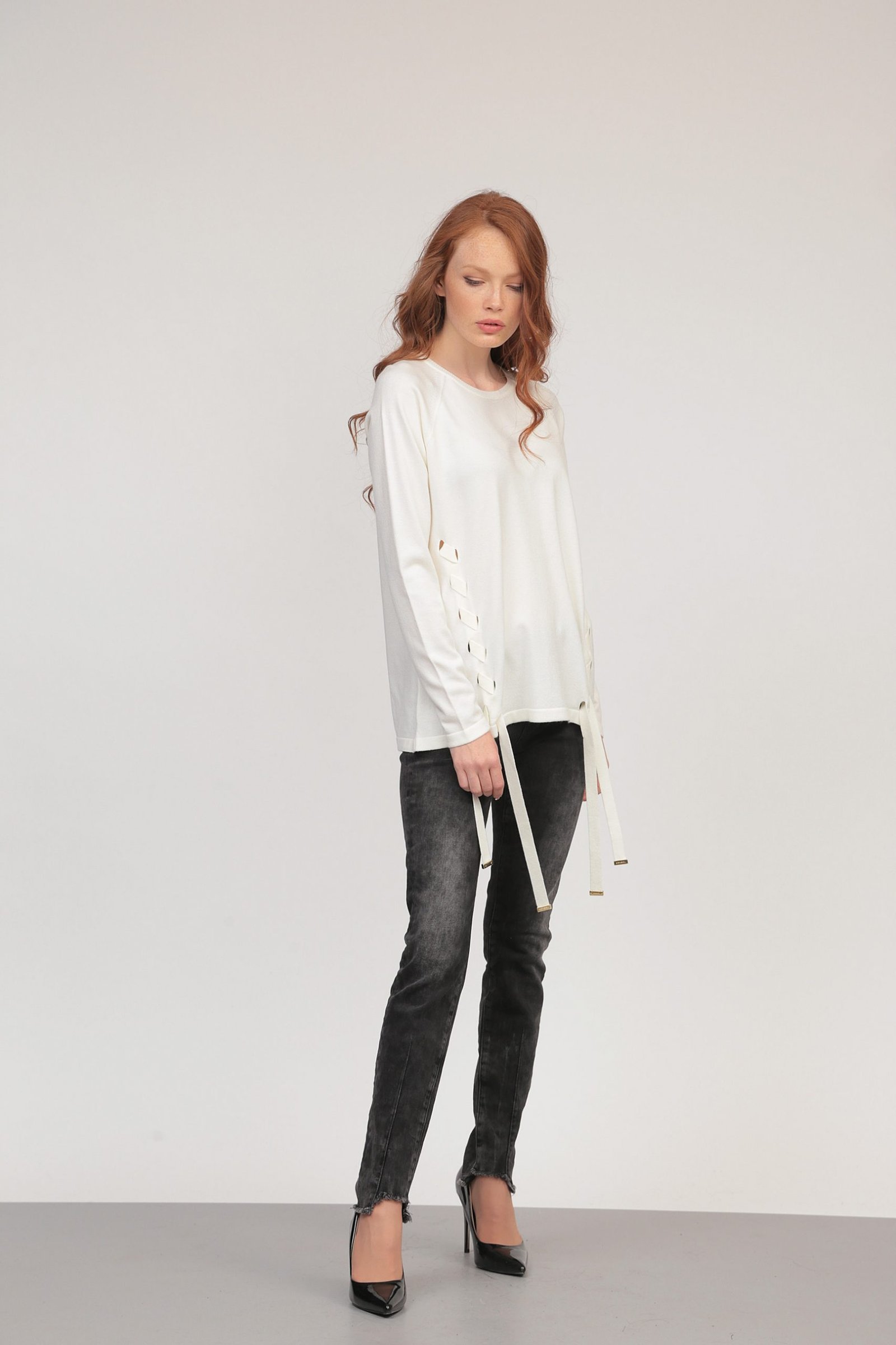 Разпродажба!Блуза от фино плетиво с декорация плетени ленти.
