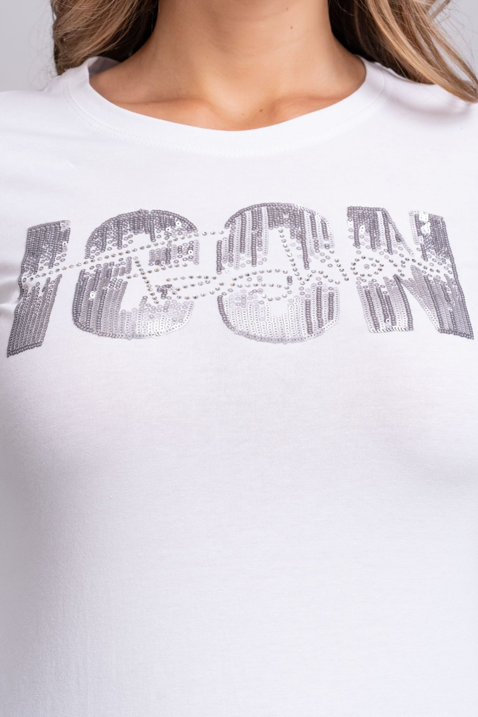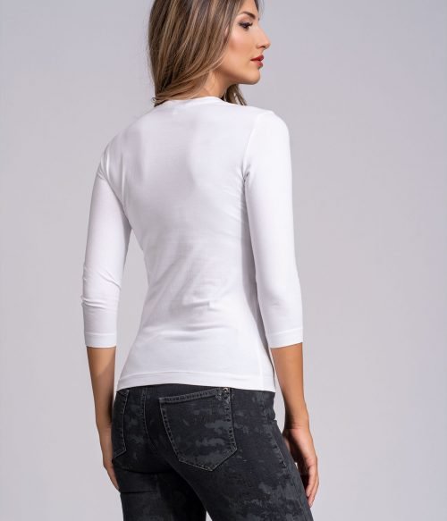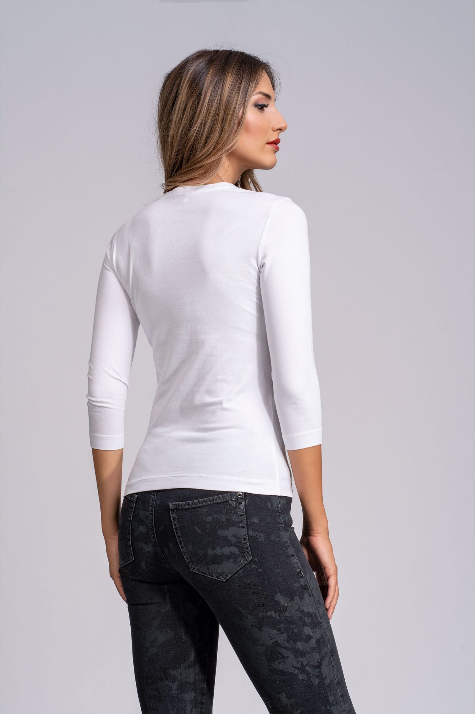 Блуза от трико памук с 3/4 ръкав с ефектен проект лутурки и камъни