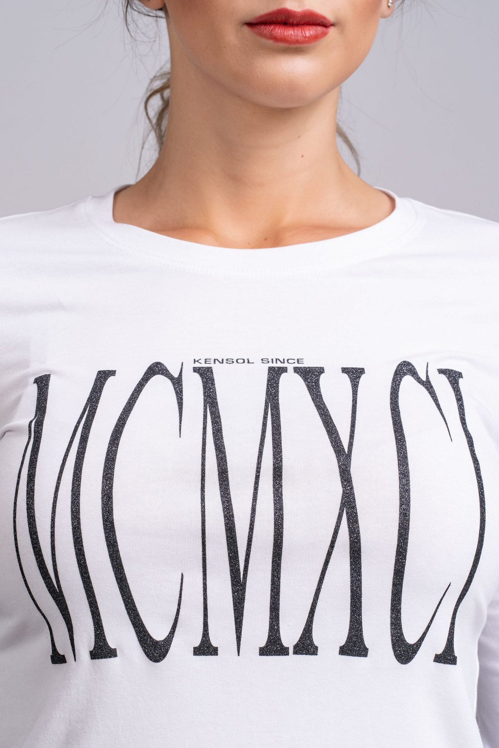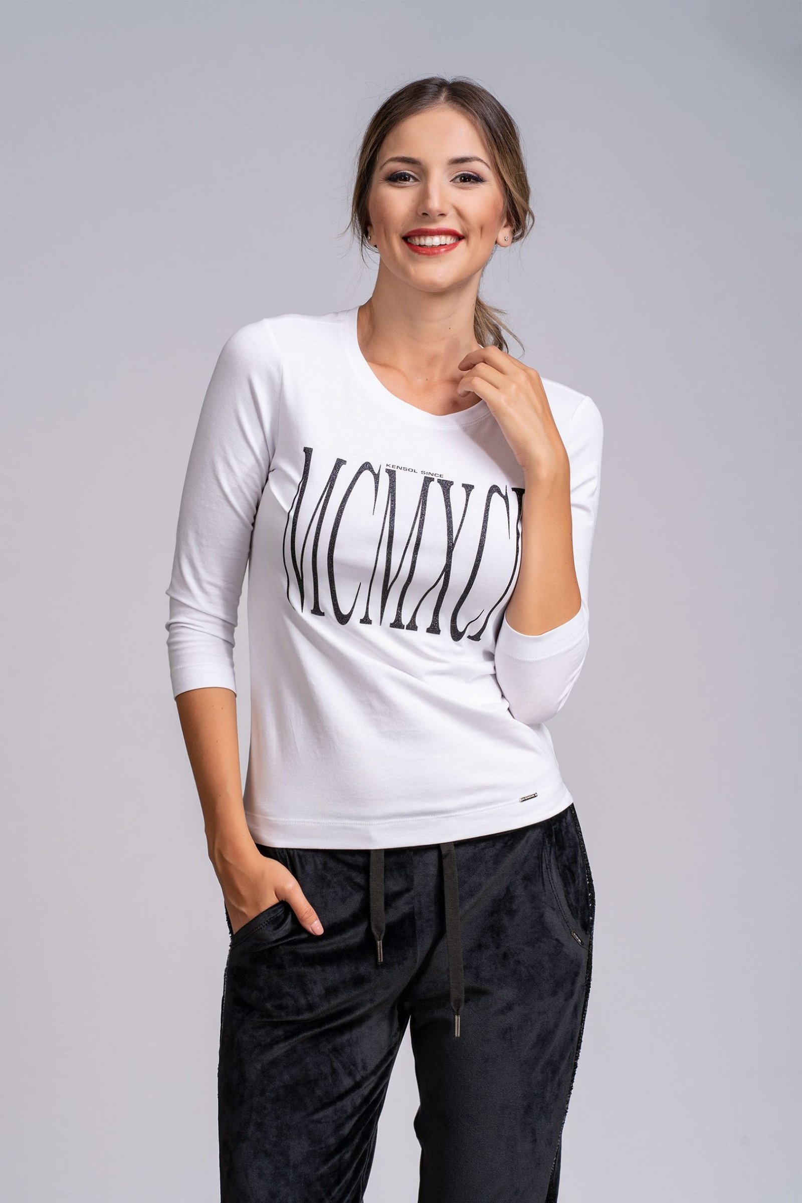 Блуза от трико памук с 3/4 ръкав и ефектен надпис с брокат.