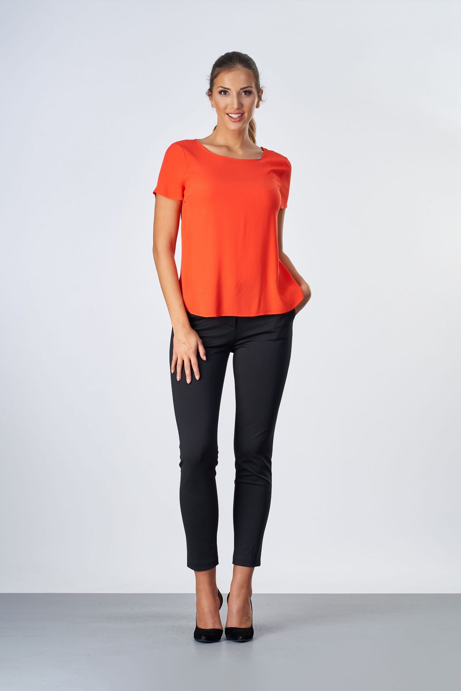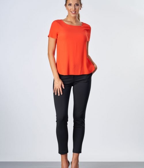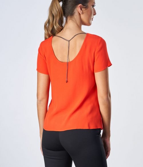 Блуза basic с къс ръкав с декорация синджир на гърба.