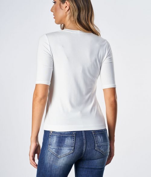 Блуза от трико памук с 3/4 ръкав, обло деколте и платка от тюл.