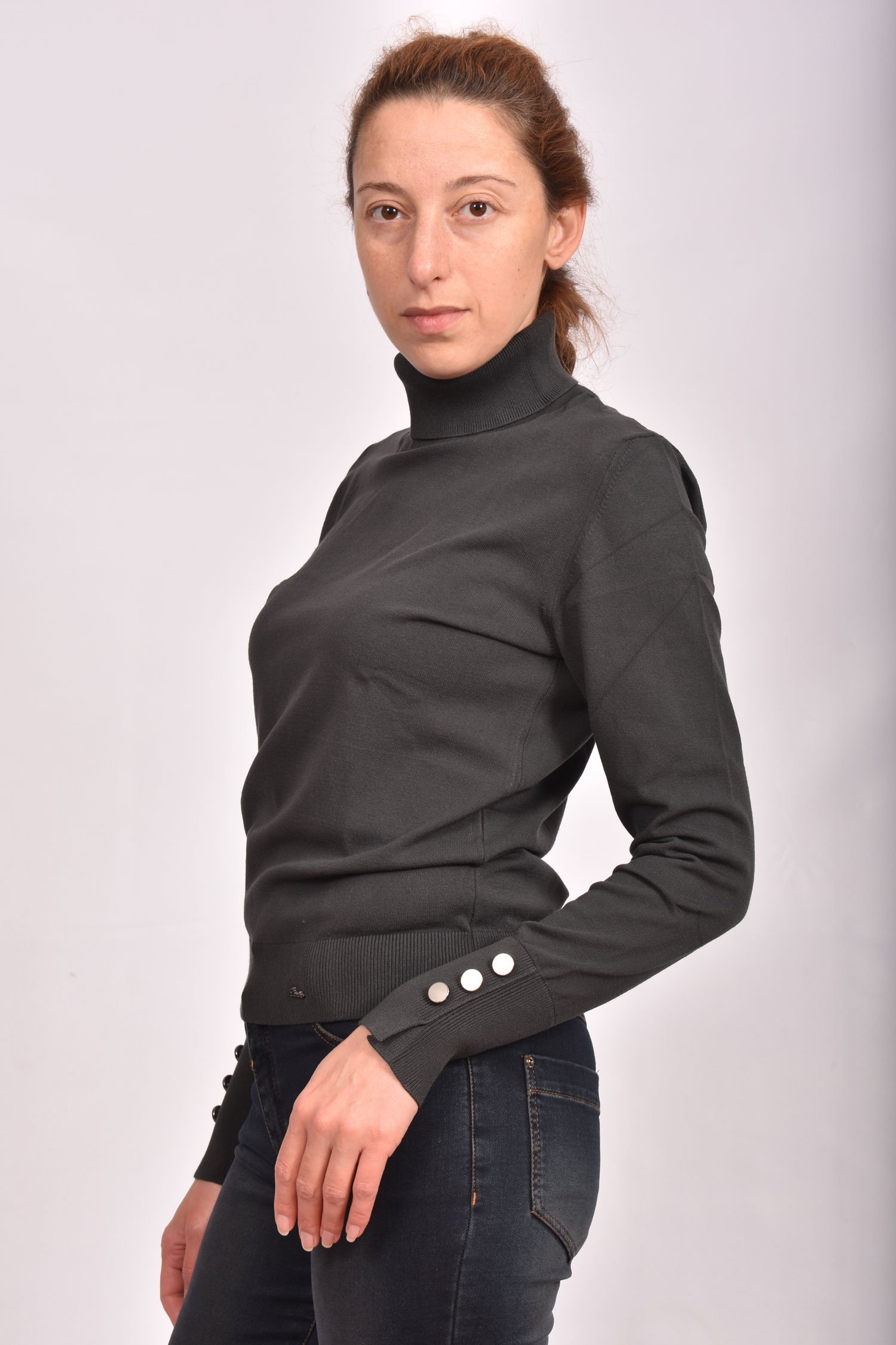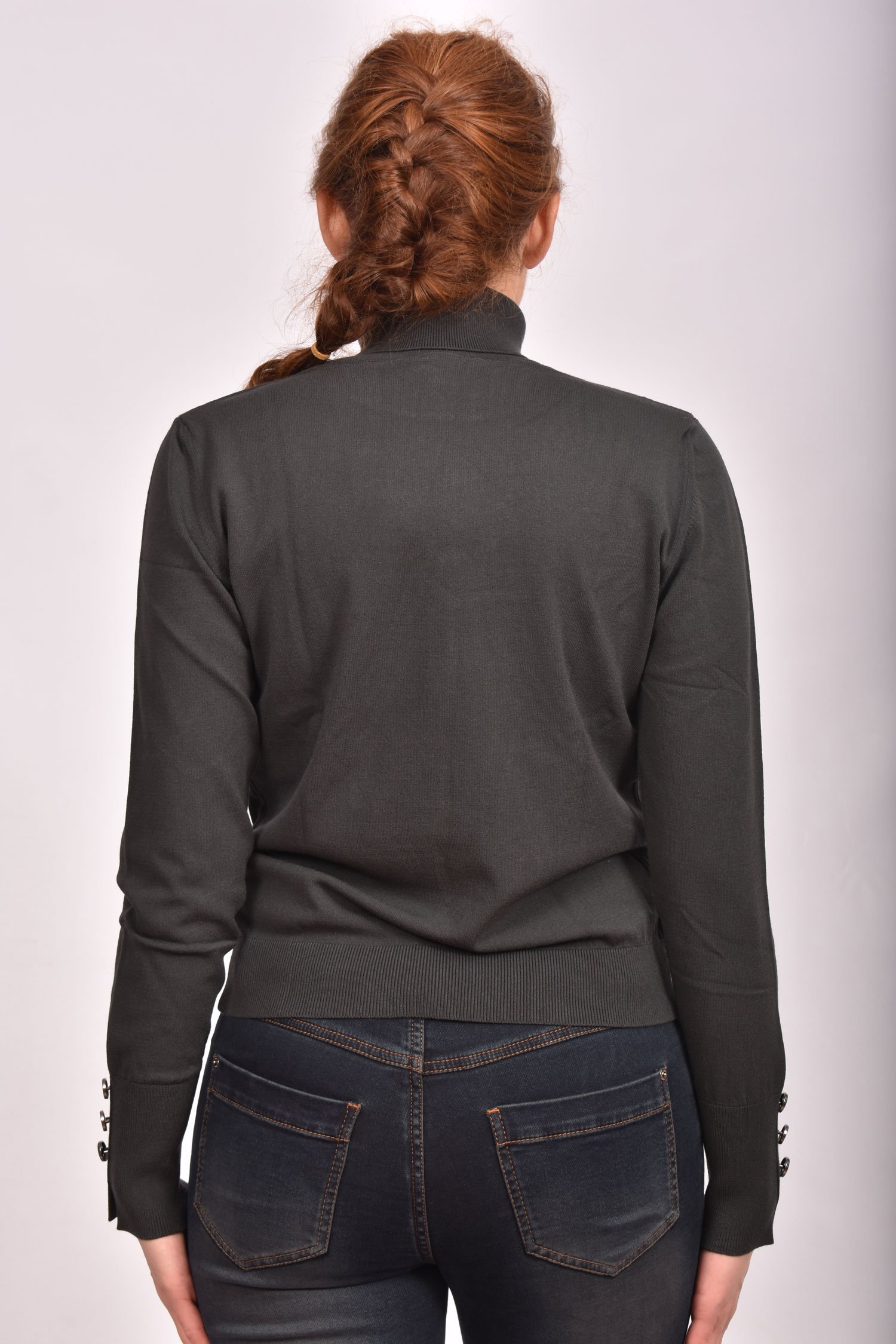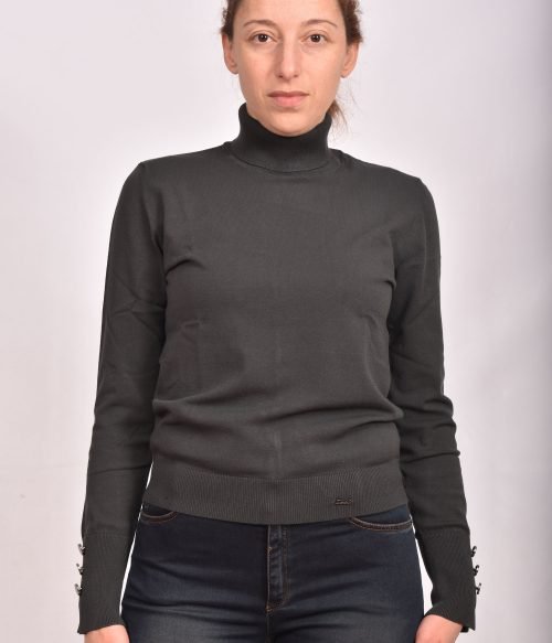 Разпродажба!Блуза поло от вискозно плетиво с копчета на ръкавите