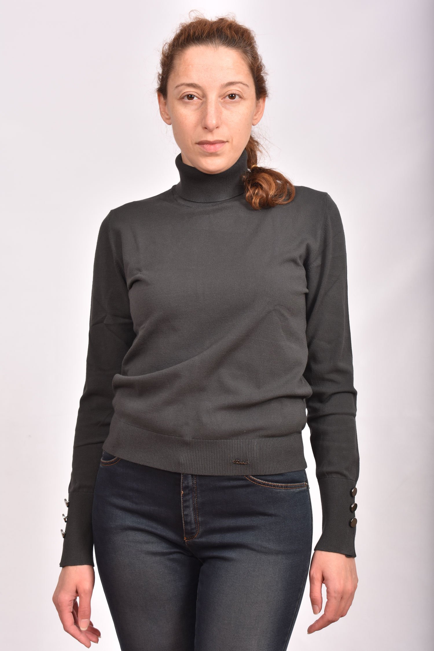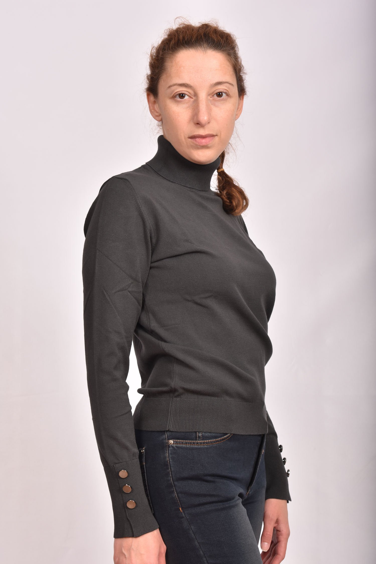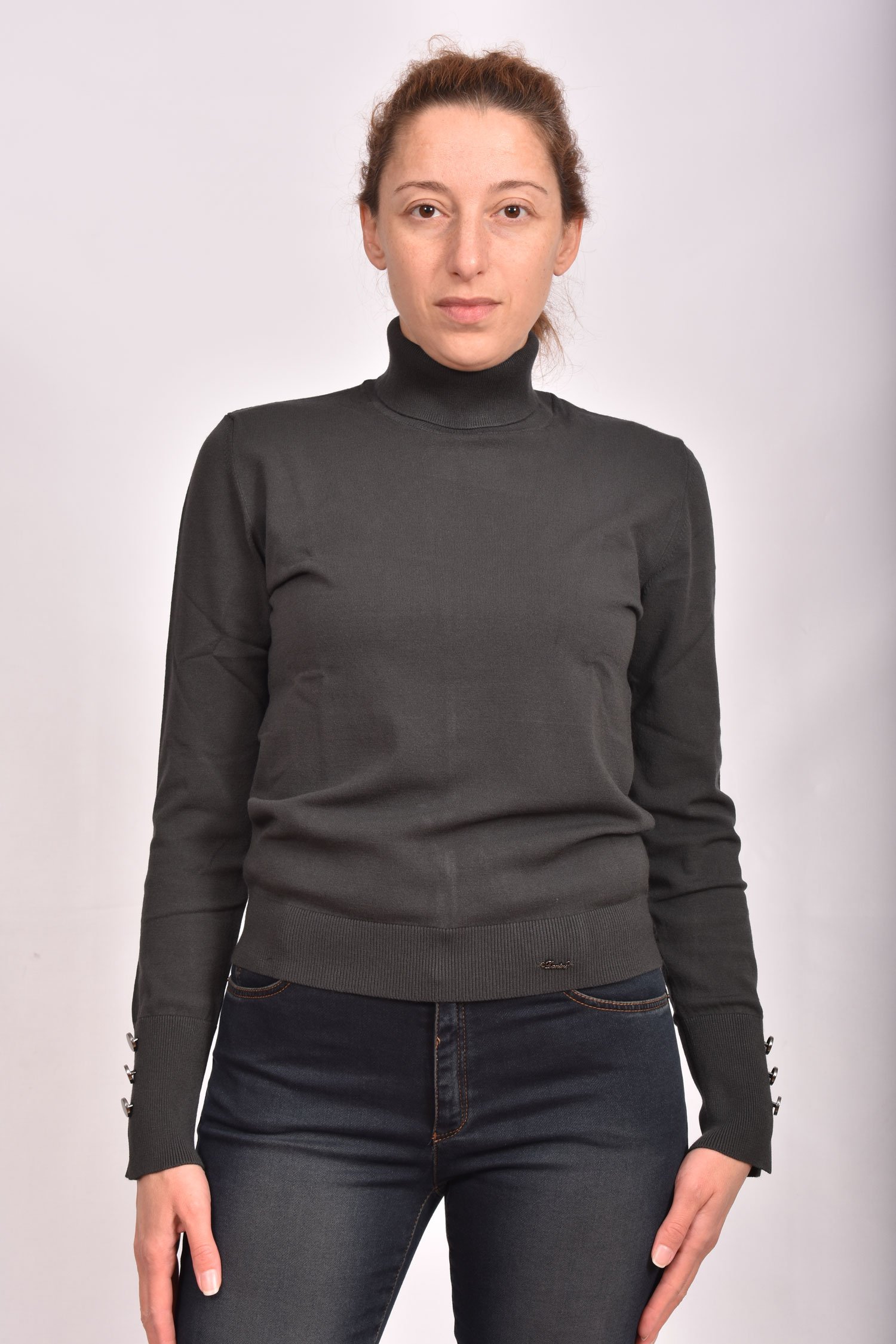 Разпродажба!Блуза поло от вискозно плетиво с копчета на ръкавите