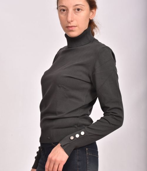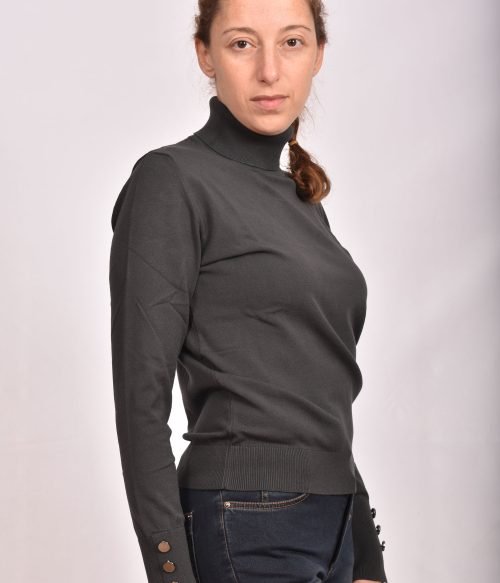 Блуза поло от вискозно плетиво с копчета на ръкавите