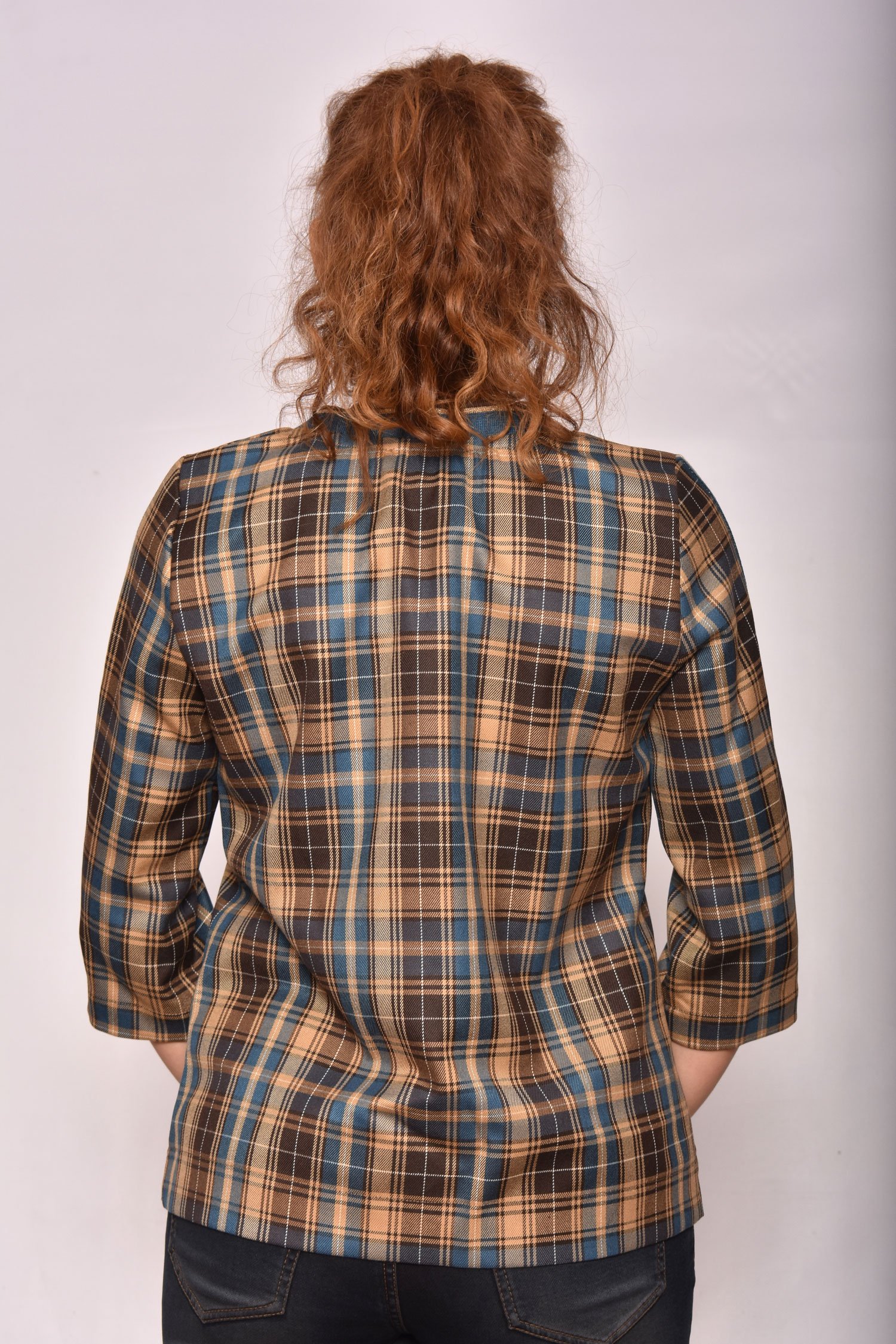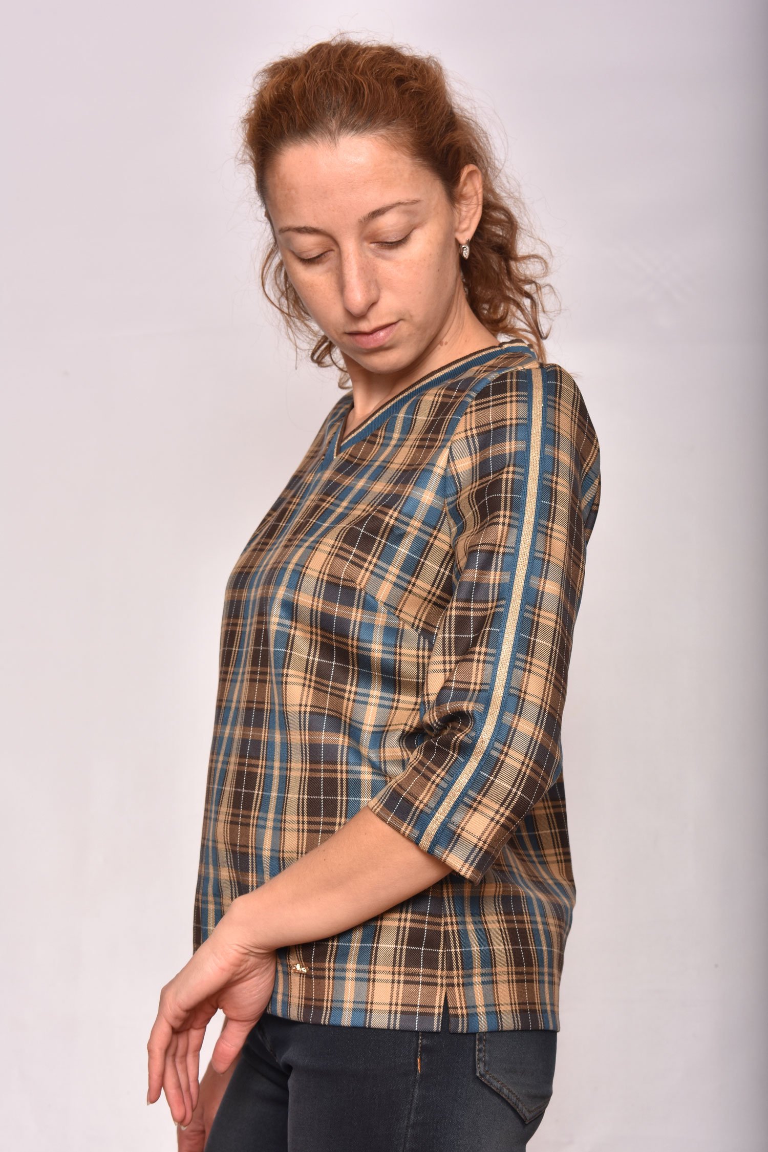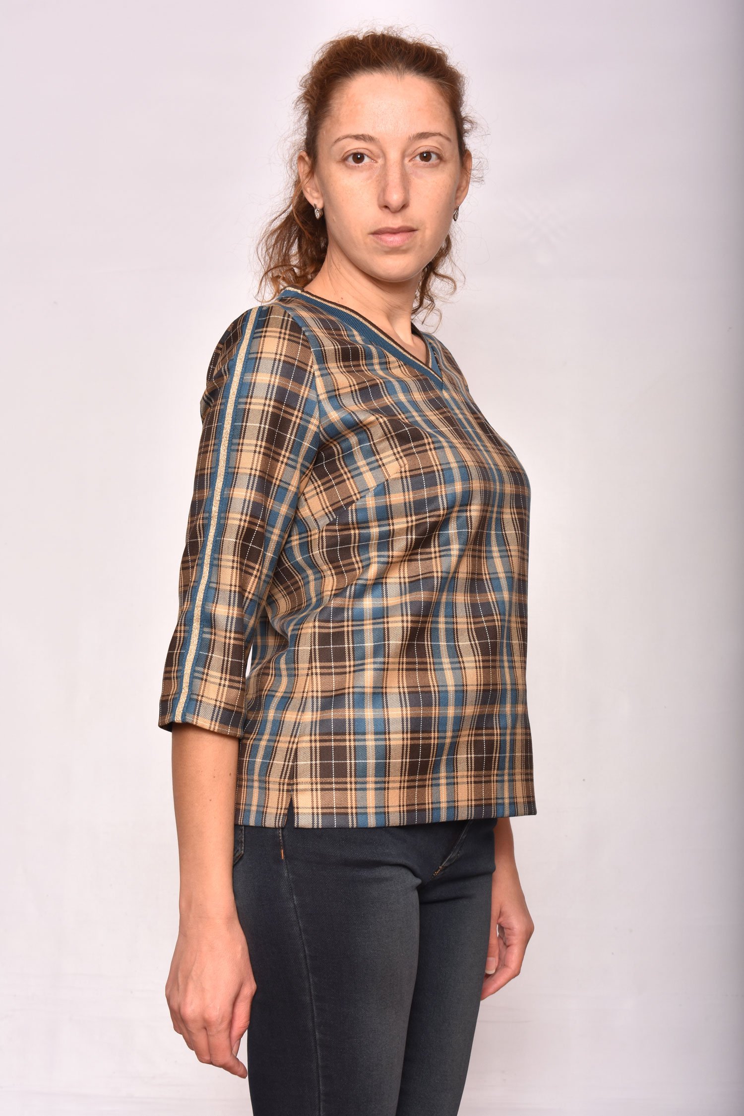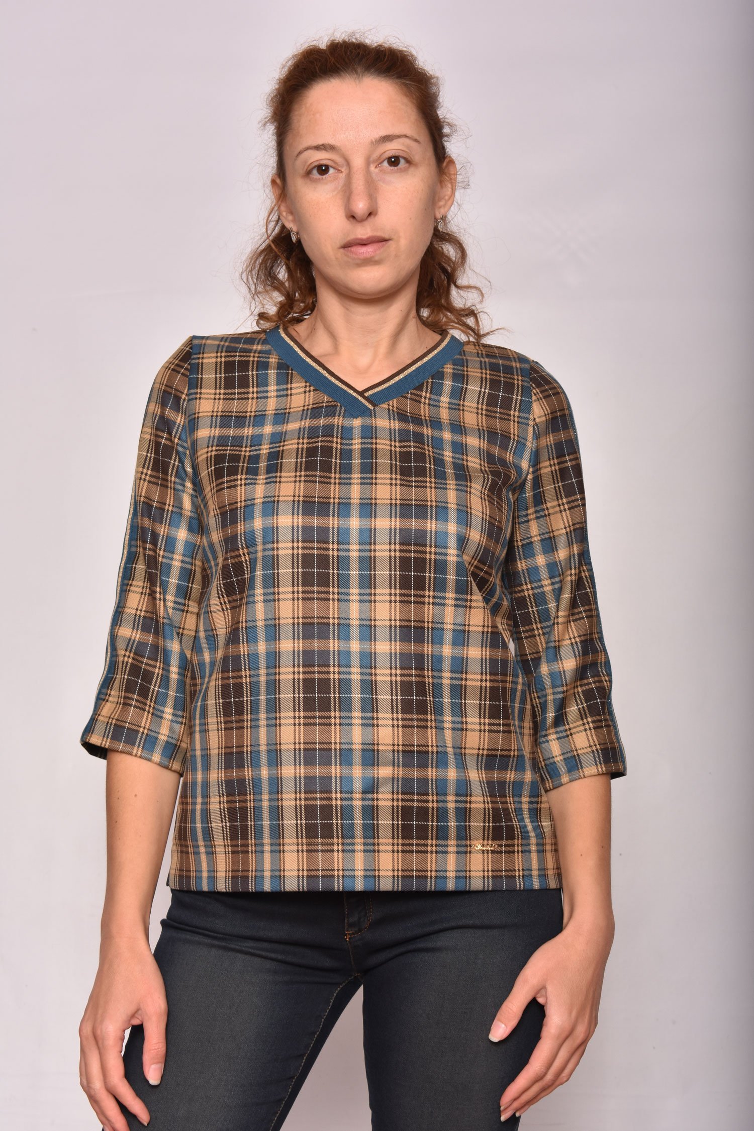 Блуза каре с триъгълно ластично деколте и декорация по ръкавите