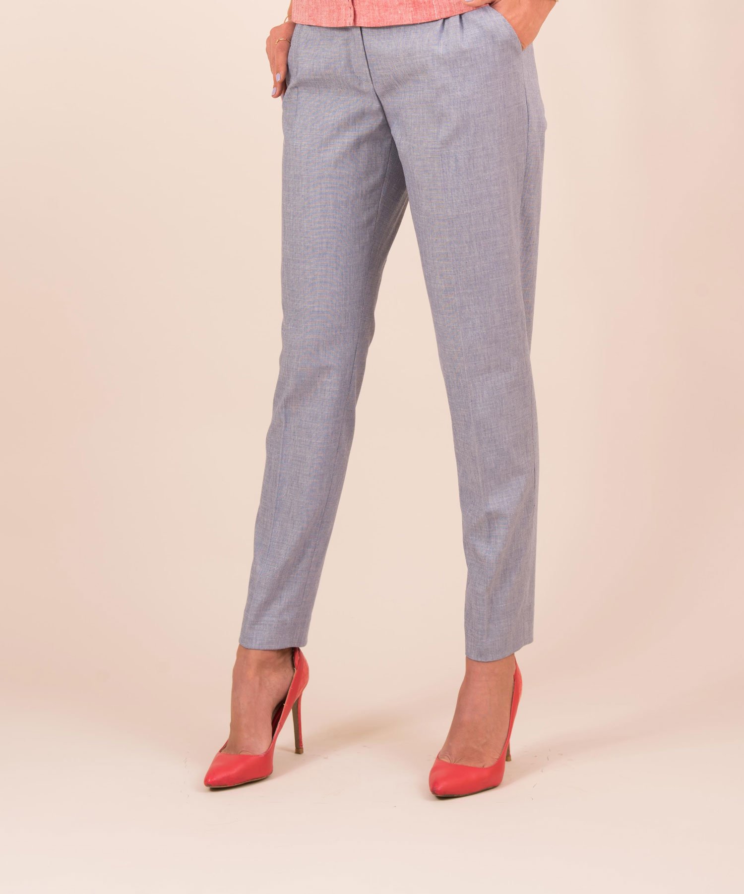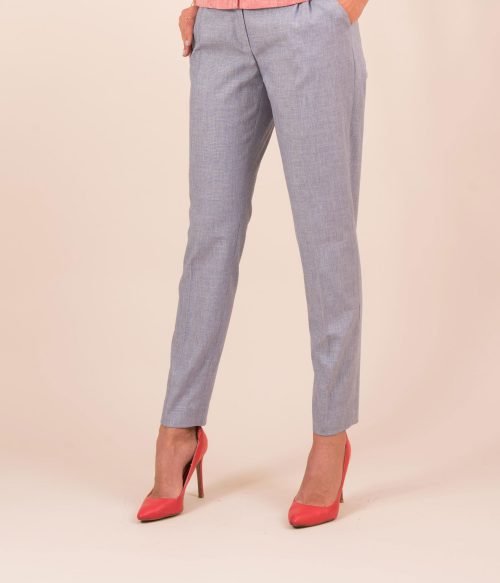 Класически ленен панталон с басти , италиански джоб и ръб. Закопчаването е с едно копче и цип. Цветът е синьо-сив меланж.