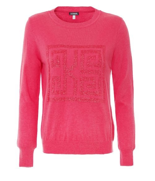 Пуловер с дълъг ръкав, обло деколте и квадратен елемент.