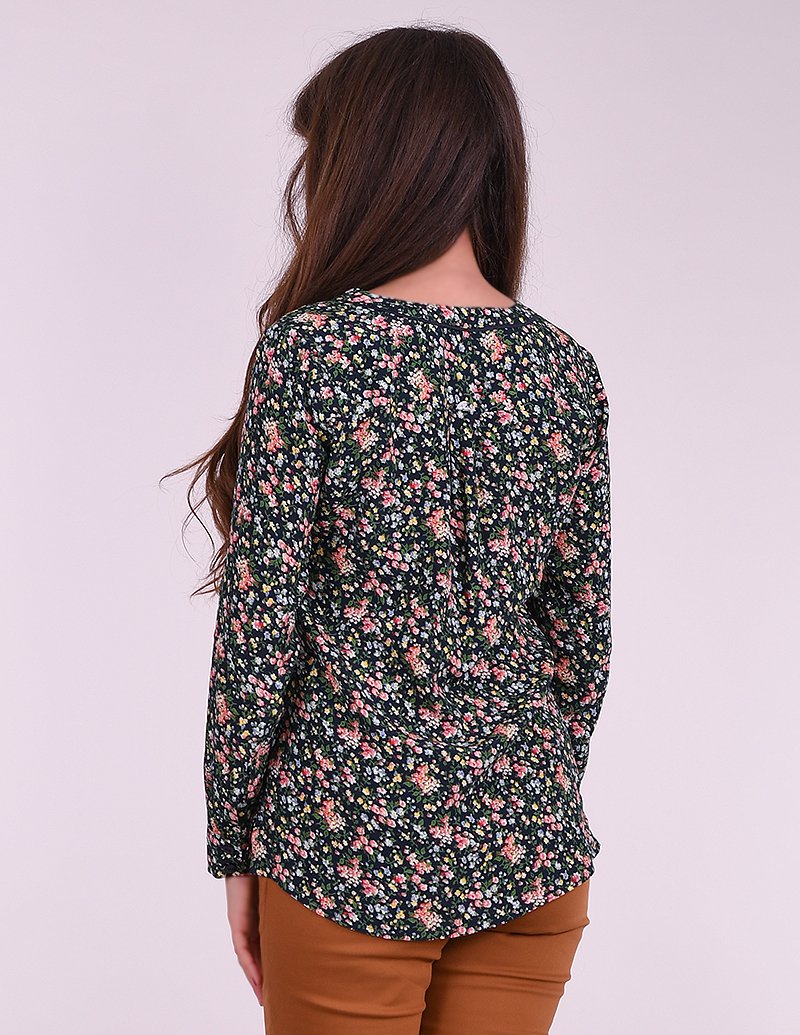 Страхотна риза с дълъг ръкав – пъстро обещание за открояваща се визия. Моделът е от вискоза със свободен силует и леко удължаване в задната част. Деколтето е V-образно с канон – украсен с паспел, копченца в тон и легнало столче. Риза АКВА ВЕРДЕ е предложение за свобода и кокетно настроение!
