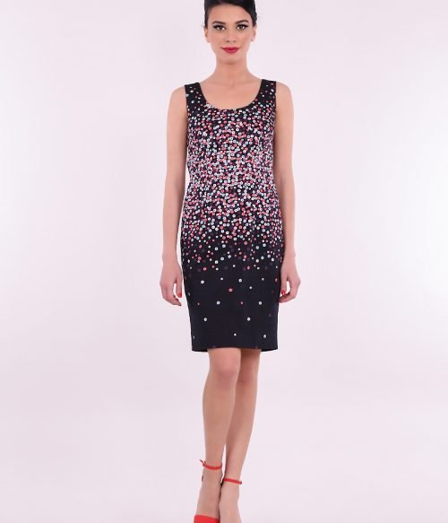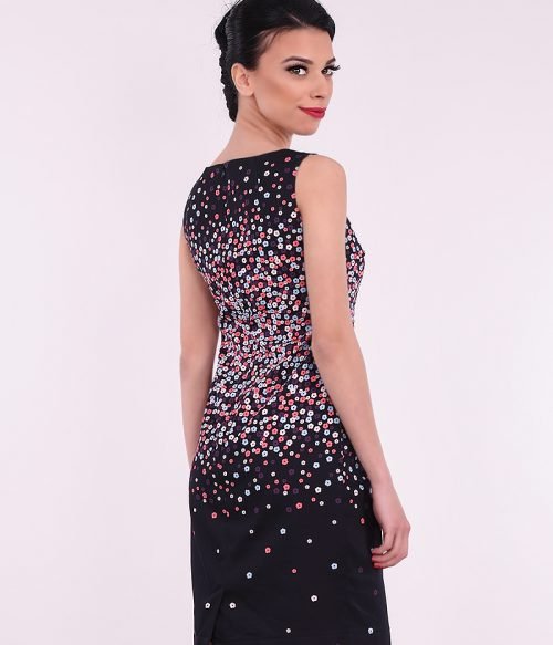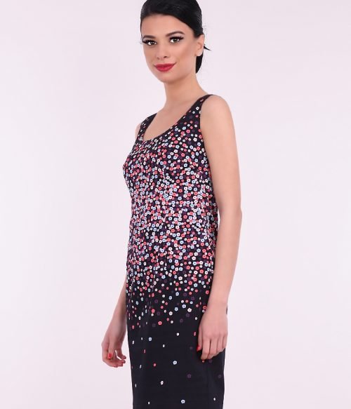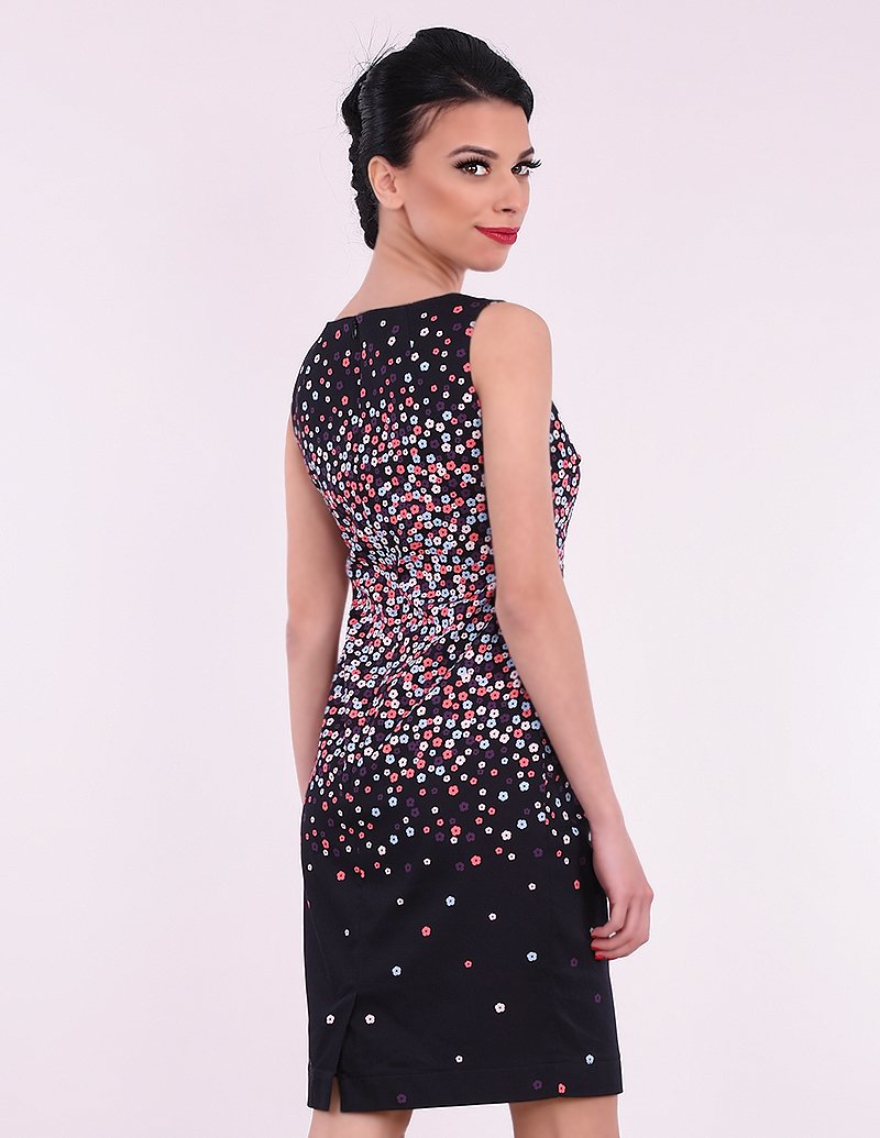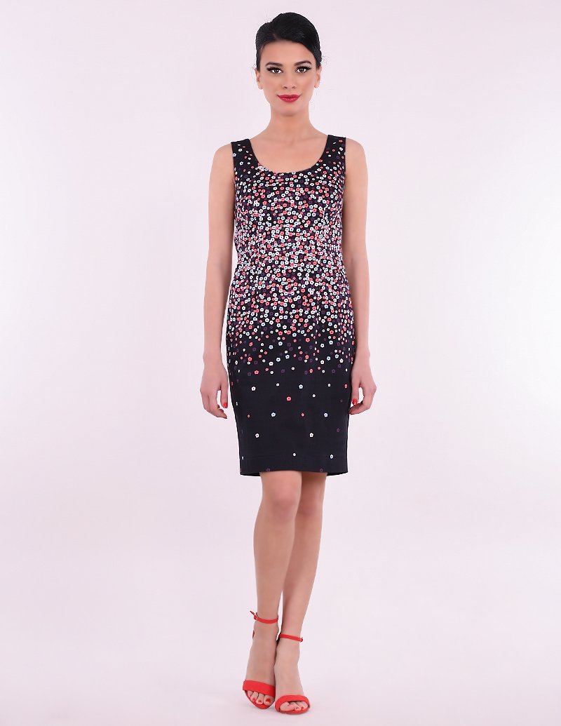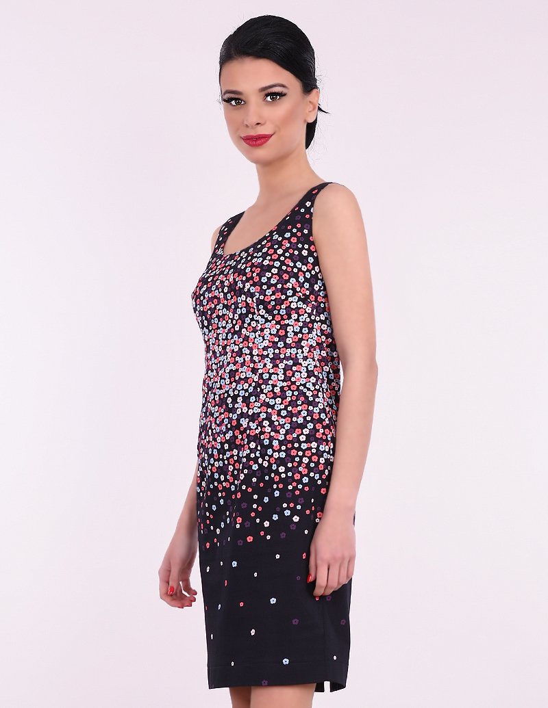 Памучна рокля без ръкави с нежен десен на цветчета.
